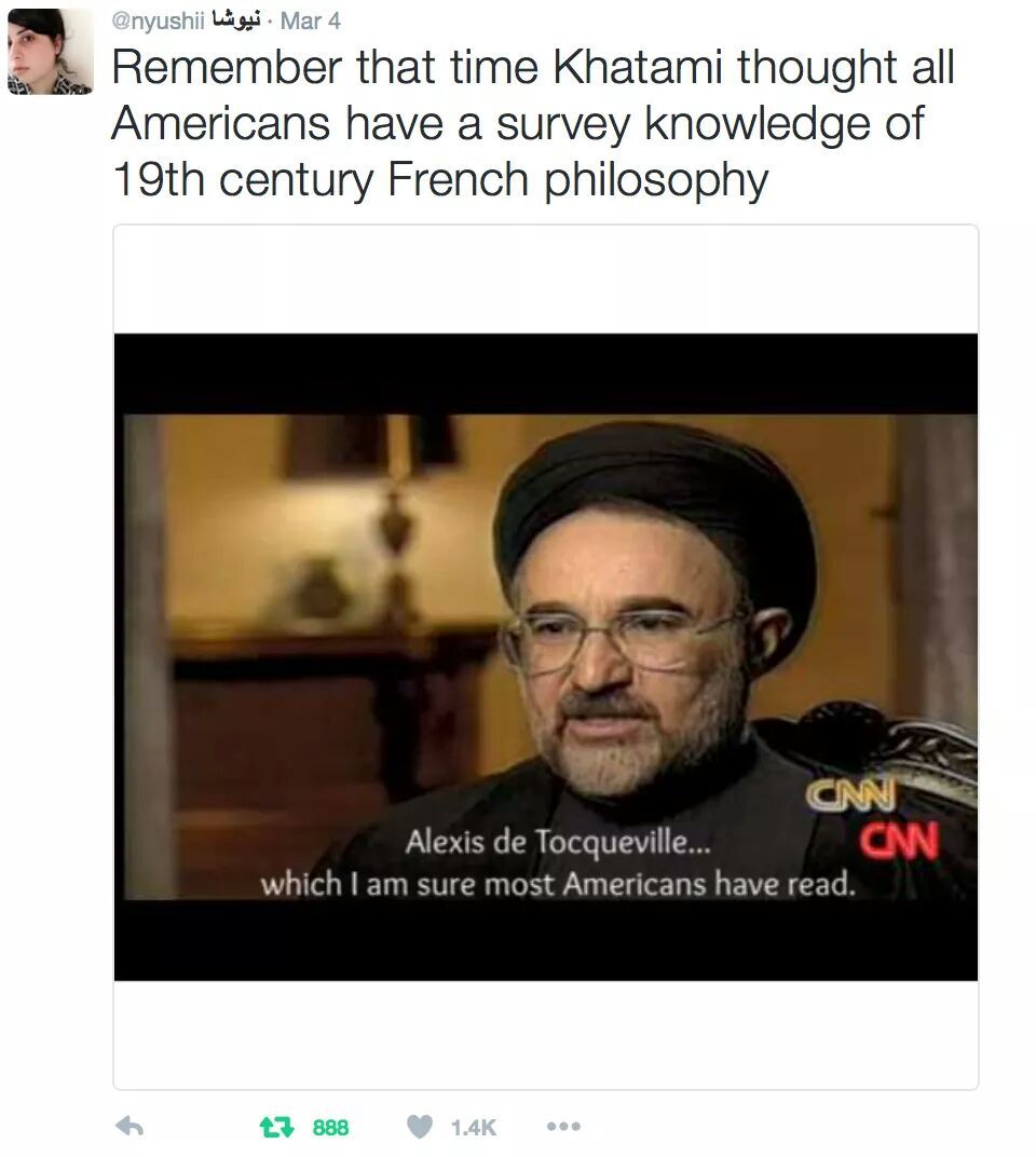 It’s important to point out that it’s actually worse. It’s completely reasonable for him to expect most Americans to have read de Tocqueville because de Tocqueville’s most famous work is deadass a very important work on American politics literally called ‘Democracy in America’.