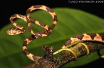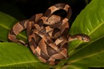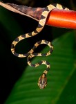 The fiddle-string snake (Imantodes cenchoa), also known as the blunthead tree snake, is a species of rear-fanged colubrid snake endemic to Mexico, Central America, and South America. They are known for their slender bodies and large heads, of which the eyes make up 26%. Their excellent vision helps them hunt for frogs, lizards, and reptile eggs.