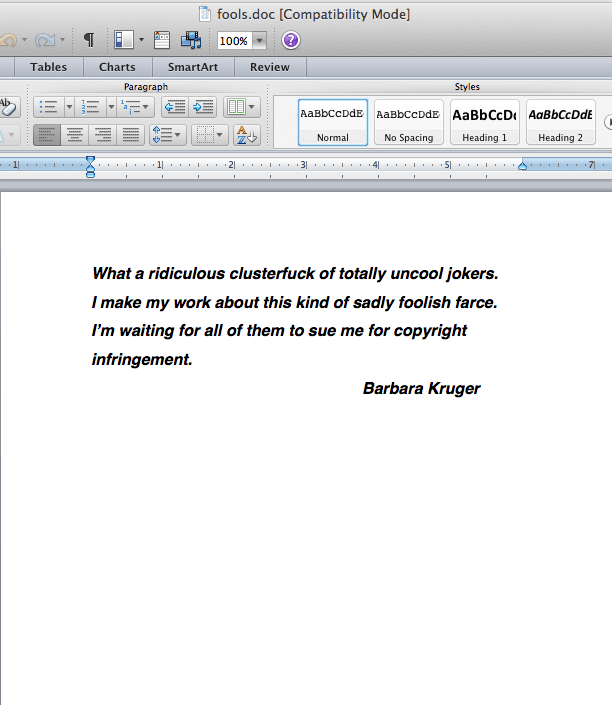 I emailed her casually to ask her about this. And today, she got back to me, and gave a candid statement on the matter of Supreme for the first time, ever, really. By emailing me a blank email, with an attachment. Which you can see above.