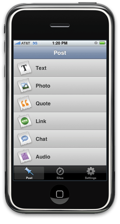 Tumblerette was originally developed by the insanely talented Garrett Ross and Jeff Rock at Mobelux. We had the pleasure of hanging out with them in New York last month. Not only are these guys remarkable developers, they have an incredibly inspiring vision for building consumer products, and we couldn’t wait to start working with them on the next suite of Tumblr/iPhone features.