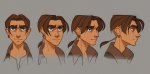 was ruminating on twitter about how floaty Jim Hawkins’ features are—he’s all angles in profile, and then a sweet brooding anime boy from the front?? They don’t entirely reconcile, SO I took a quick pass at a more consistent Jim turnaround, with a few more anchor points and angles.
