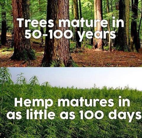 Our forests are being cut down 3x faster than they can grow! One acre of hemp produces as much cellulose fiber pulp as 4.1 acres of trees!!! This is super useful for so many things, especially paper production! In addition, hemp takes in carbon dioxide 4x as fast as trees do, which makes it especially valuable in the act of reducing CO2 emissions/greenhouse gases! 🌲🌲🌲 source